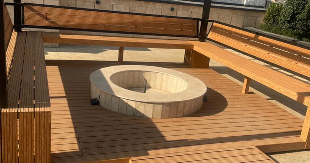 در بخش کفسازی از دک چوب پلاست باکیفیت استفاده شده که علاوه بر ظاهر طبیعی و شیک، مقاومت بالایی در برابر رطوبت، نور خورشید و تغییرات آبوهوایی دارد.
